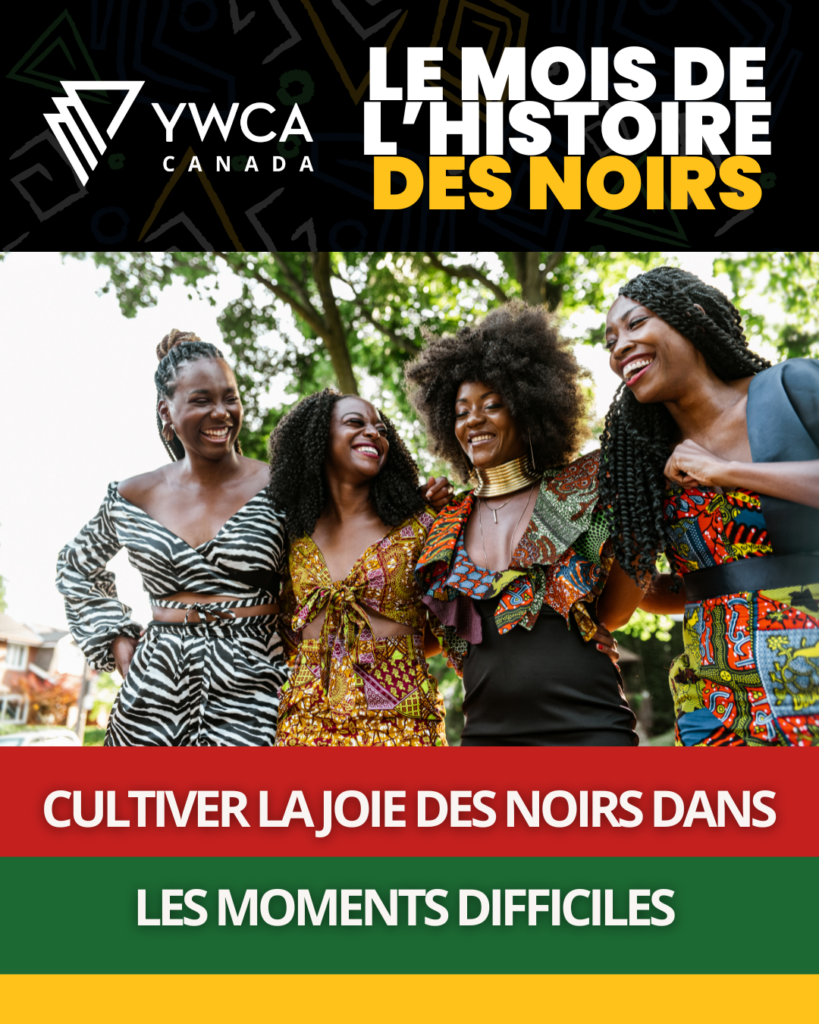 Le 19 février, YWCA Canada organisera un panel sur le thème « Cultiver la joie des noirs dans les moments difficiles ». Les leaders des YWCA réfléchiront ensemble à la signification de la joie noire, à la façon dont elle nous soutient dans le deuil et les difficultés, et à l’importance qu’elle revêt pour les mouvements de justice raciale.