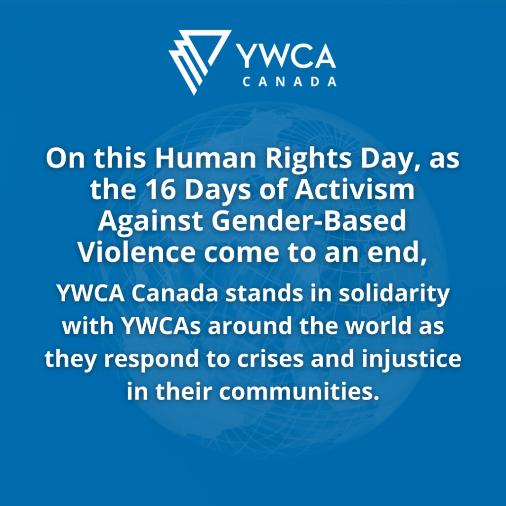 On International Human Rights Day, YWCA Canada continues to champion self-determination and liberation, at home and around the world. As a member of the World YWCA movement active in more than 100 countries, we are deeply connected to global issues affecting women, children, and marginalized communities. Our core values, our advocacy efforts, and our work are rooted in social justice that does not stop at national borders.